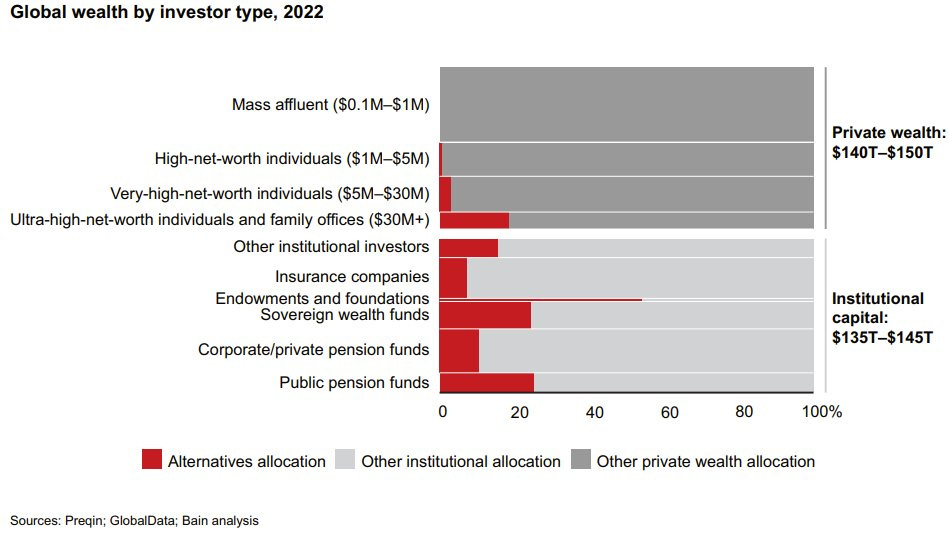 It’ll be interesting to see what happens in the next few years. Endowment bias (pun intended) is real and not everyone is going to survive. The wolfpack will get smaller, but the funds that remain will have true, sustainable competitive advantages. The last hope for the industry will be the penetration of the largest untapped investor segment, HNW individuals, a customer base that is unallocated to private equity and alternative assets. While this is a heavily fragmented market, tech-enabled platforms (e.g., CAIS, Moonfare, etc.) will be the most likely distribution points for this segment.